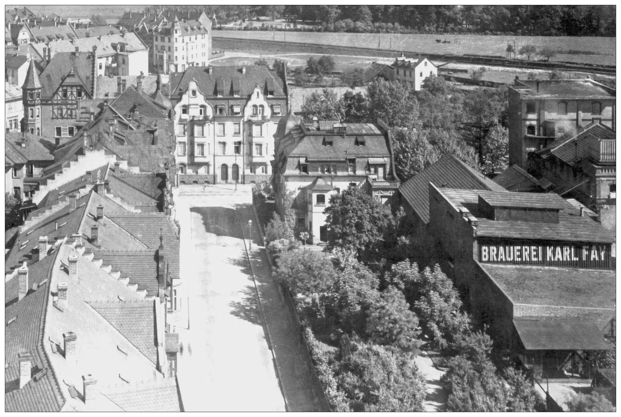 Frankfurter Str. 57 (#) : Blick nach Südosten (verm. vom großen Gasbehälter aus) auf die Frankfurter Str. 57