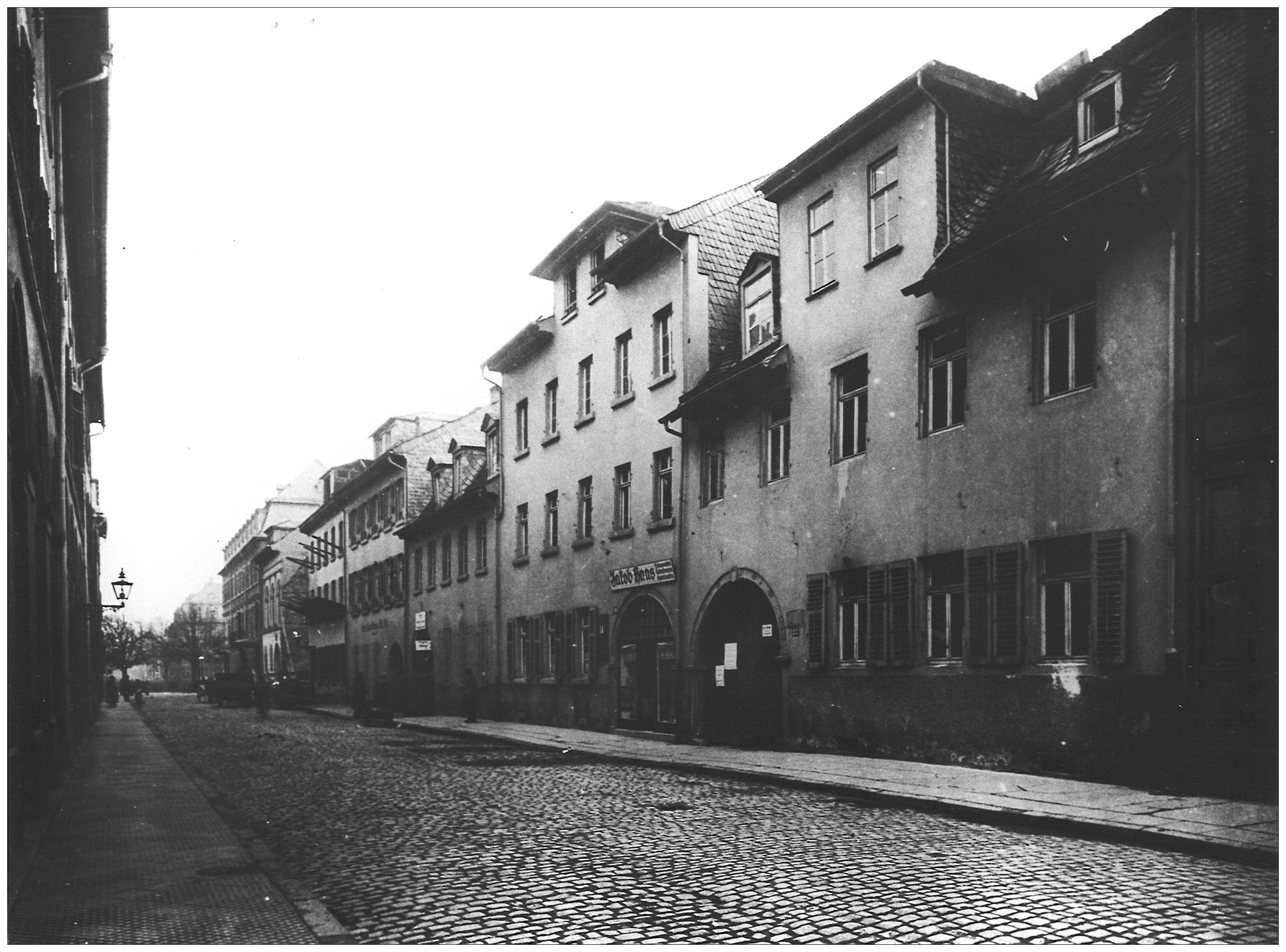 NB: Wahrscheinlich stammt dieses Bild nicht aus Darmstadt. Vermutlich stammt es aus Auerbach (Bensheim) 1928, das Haus rechts könnte Darmstädter Str. 162 sein.
